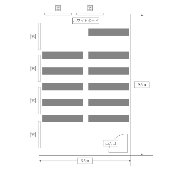 定員 : 20名 ※スクール形式での定員です。収容人数はレイアウトによって変わります。