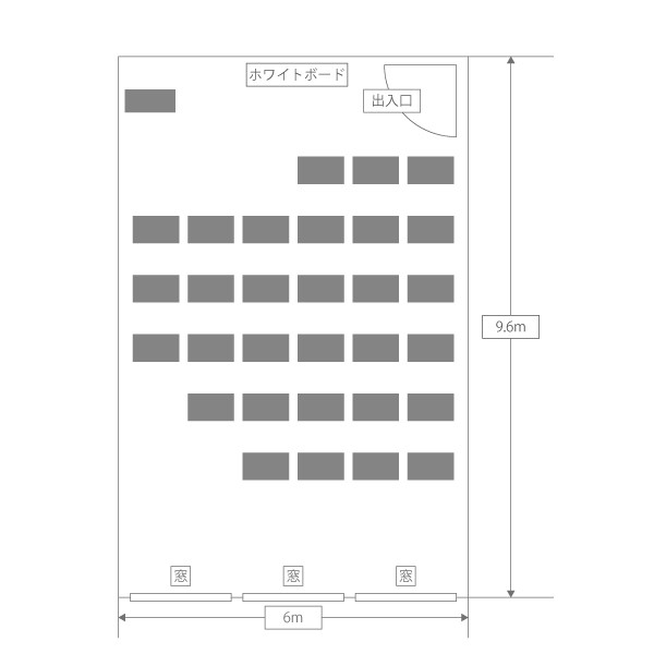 定員 : 30名 ※スクール形式での定員です。収容人数はレイアウトによって変わります。