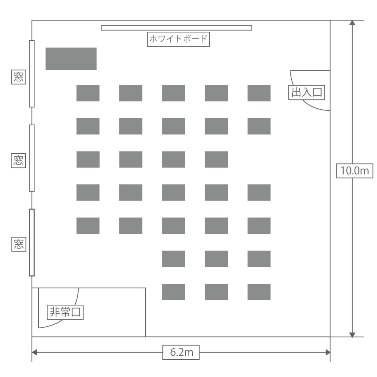 定員 : 30名 ※スクール形式での定員です。収容人数はレイアウトによって変わります。